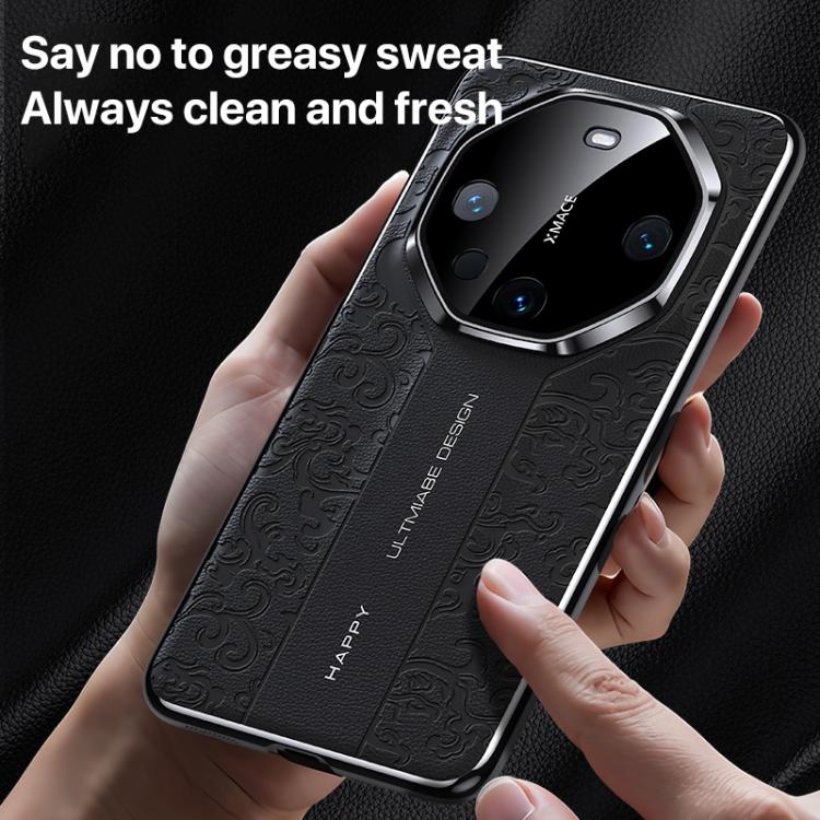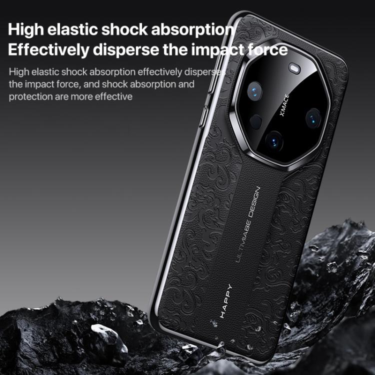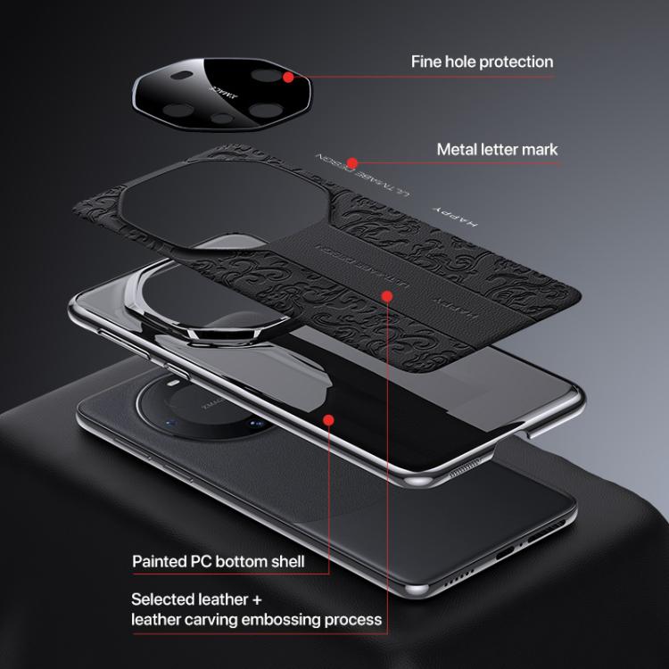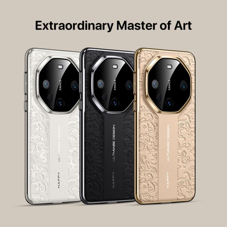 Funda de PC de cuero liso con diseño de dragón en la nube para Huawei nova 14 Pro (dorada)