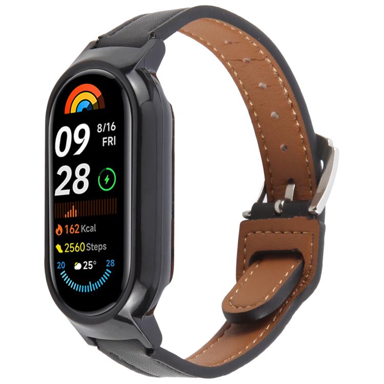 Funda de PC para Xiaomi Smart Band 9 con correa de cuero de microfibra integrada (negro)