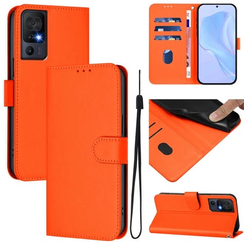 Funda de Piel con Cordón para TCL 40 Se Acabado Mate (Naranja)