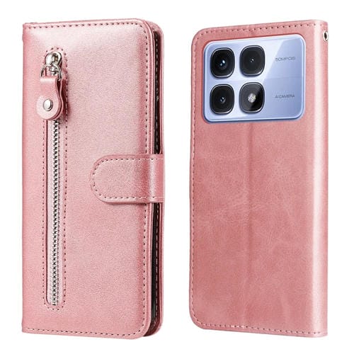 Funda de Piel con Cremallera y Textura de Becerro a la Moda para Redmi K70 Ultra (Oro Rosa)