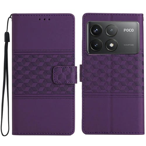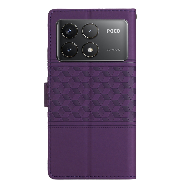 Funda de Piel con Efecto Piel En Relieve de Diamante para Xiaomi Poco F6 Pro (Morado)