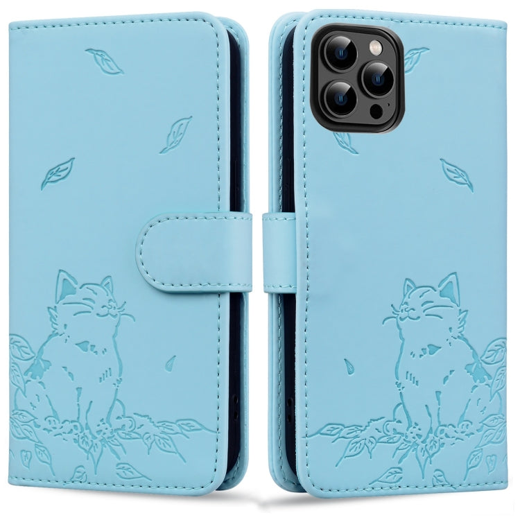 Funda de Piel para iPhone 16 Pro Max Estampado de Gato (Azul Cielo)