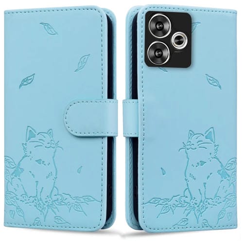 Funda de Piel con Estampado de Gato para Xiaomi Poco F6 (Azul Cielo)