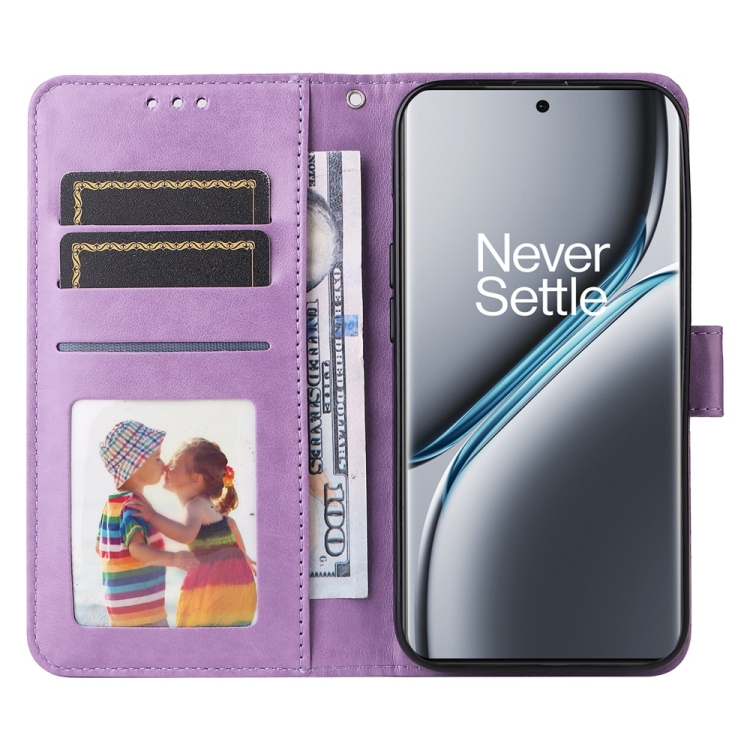 Funda de Piel para OnePlus Ace 3 Pro con Estampado de Girasoles en Relieve (Morado)