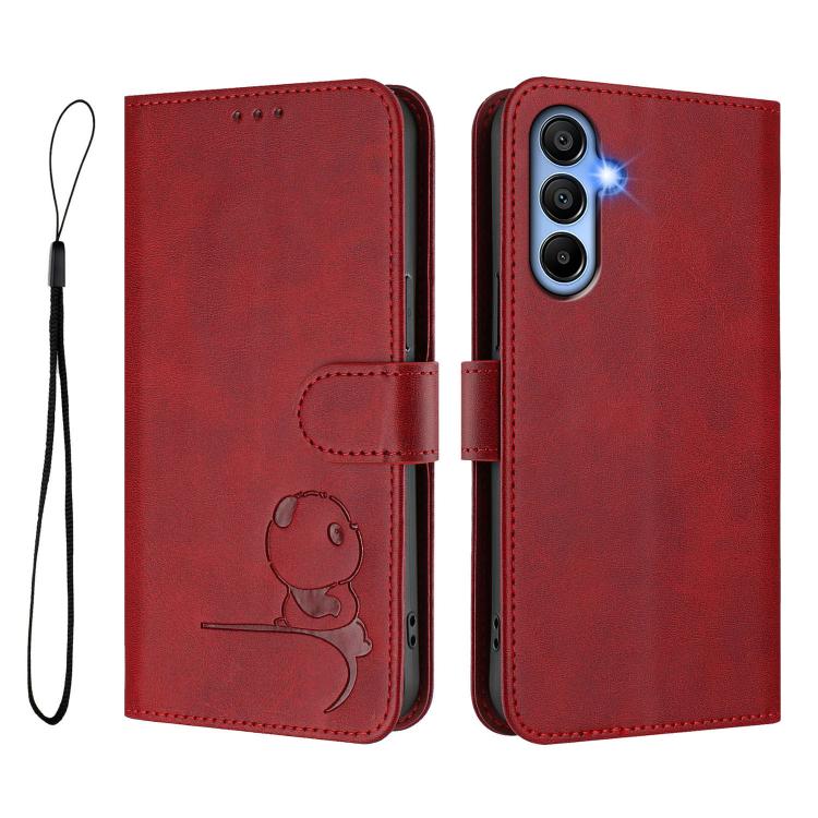 Funda de piel con estampado RFID y cordón para Samsung Galaxy A15 5G/4G (rojo vino)
