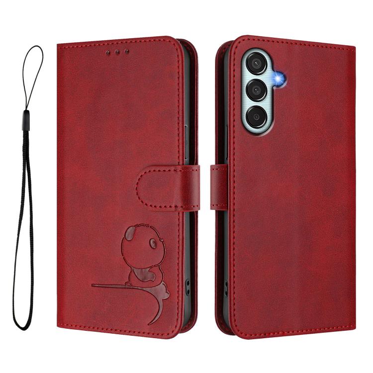 Funda de piel con grabado RFID y cordón para Samsung Galaxy M15 5G / F15 5G (rojo vino)
