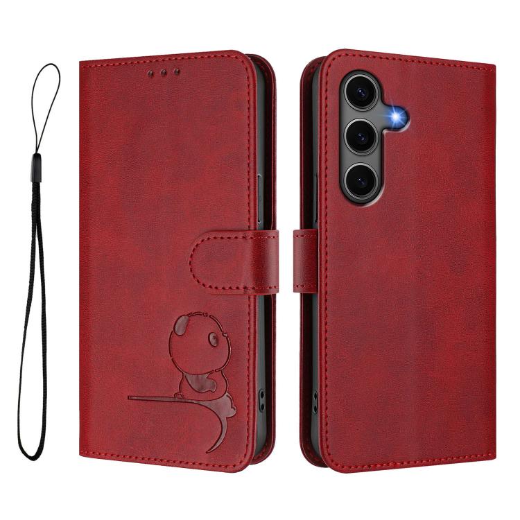 Funda de piel con grabado RFID y cordón para Samsung Galaxy S25+ / S24+ 5G (rojo vino)