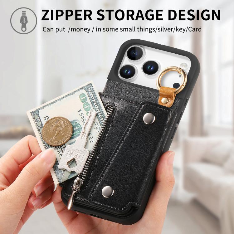 Funda de piel con hebilla en forma de D para iPhone 17 Pro (negra)