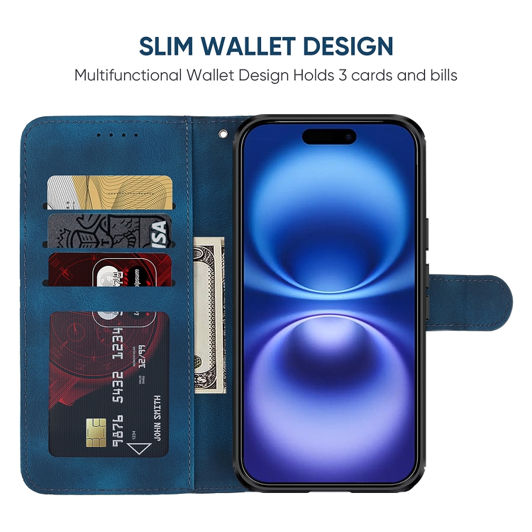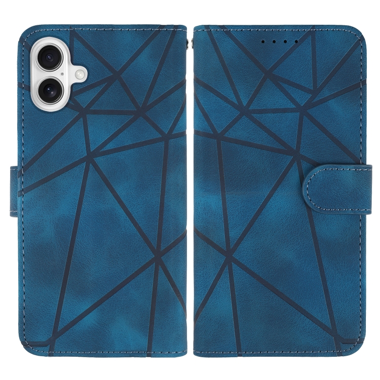 Funda de piel para iPhone 16 con líneas geométricas y tacto agradable (Azul)