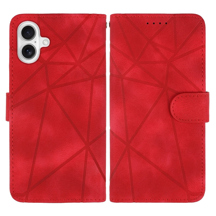 Funda de Piel para iPhone 16 Líneas Geométricas Tacto Sedoso (Rojo)