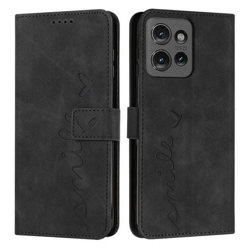 Funda de Piel con Relieve de Corazón para Motorola Edge 50 con Cordón Largo (Negro)