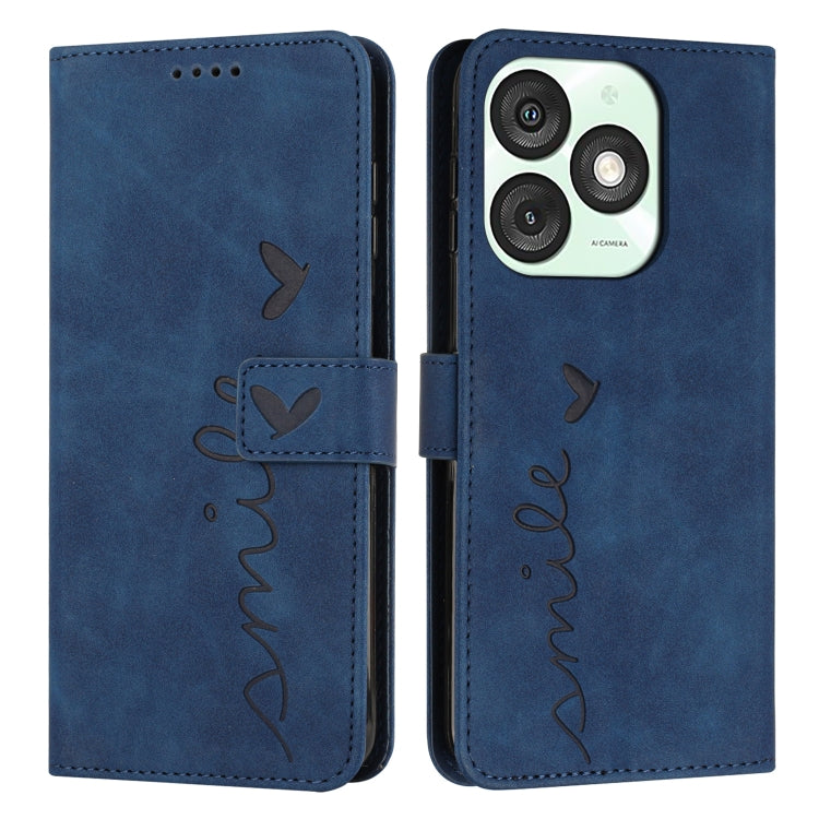 Funda de Piel con Relieve de Corazón y Cordón Largo para Teléfono Itel A50 (Azul)