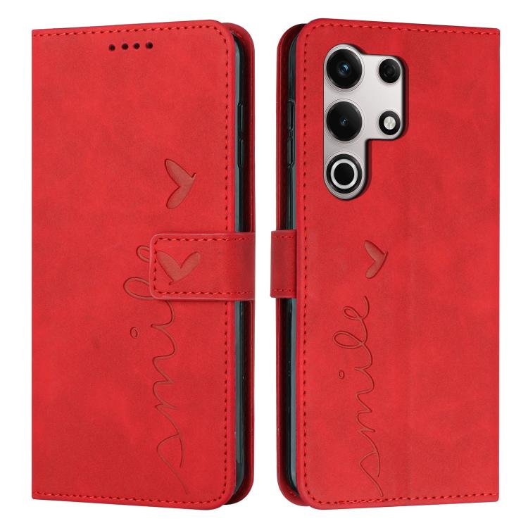 Funda de Piel con Relieve de Corazón y Cordón Largo para Itel S25 Ultra (Rojo)