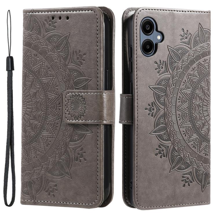 Funda de piel con relieve de flor tótem y cordón para Samsung Galaxy A07 4G (gris)