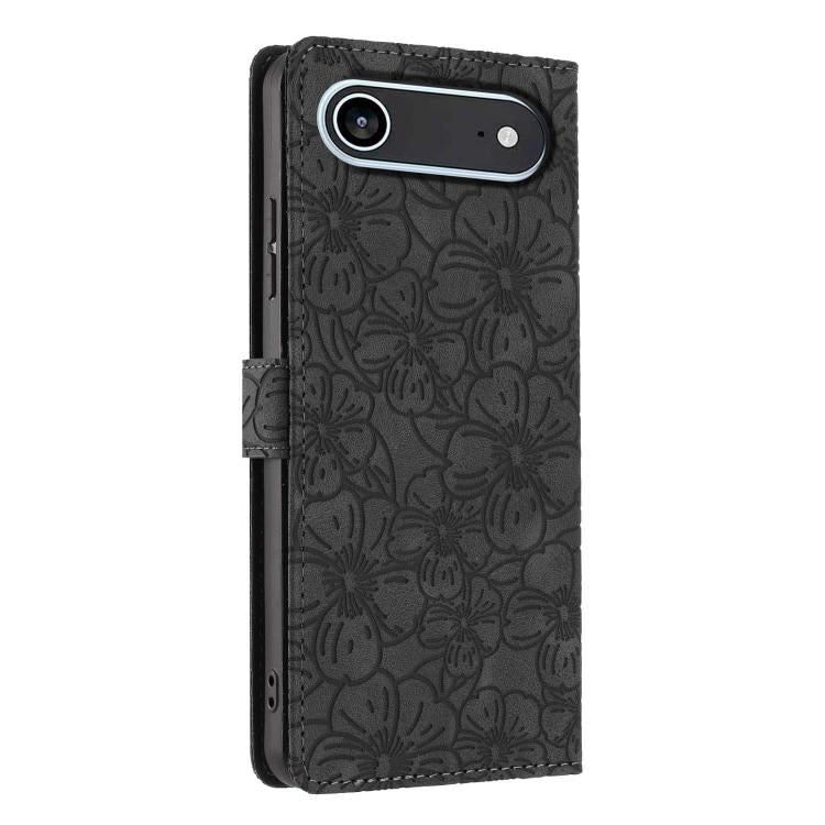 Funda de piel con relieve de flores de cerezo para iPhone Air (negra)
