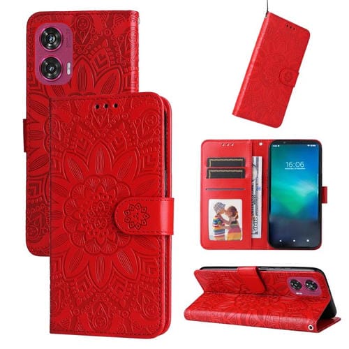 Funda de Piel con Relieve de Girasol para Motorola Edge 50 Fusion (Roja)