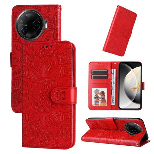 Funda de Piel con Relieve Girasol para Teléfono Tecno Camon 30 Pro (Rojo)