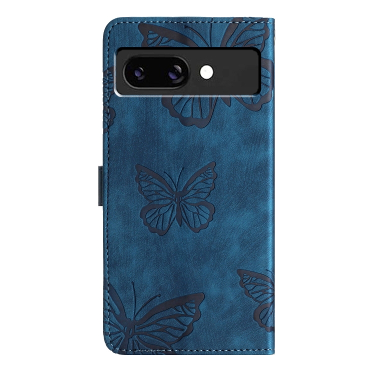 Funda de Piel con Relieve de Mariposa para Google Pixel 9A (Azul)