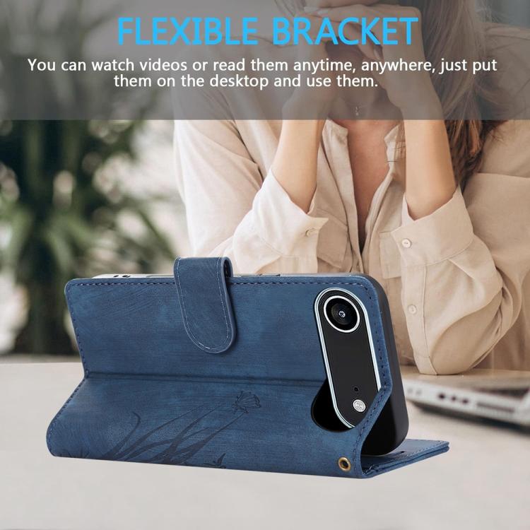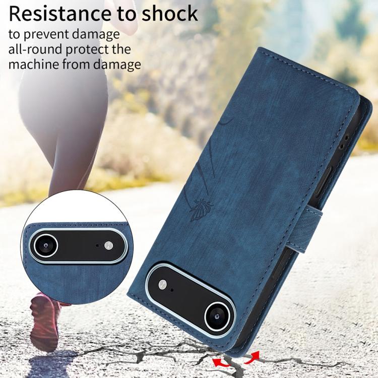 Funda de piel con relieve de mariposa y orquídea para iPhone Air (azul)