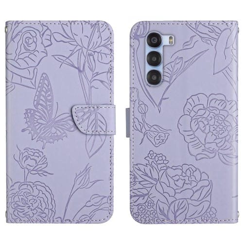 Funda de Piel con Relieve Peonía y Mariposa para ZTE Nubia S 5G A403Zt (Morado)