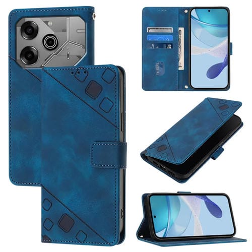 Funda de piel con relieve para Tecno Pova 6 Neo Skin Feel (Azul)