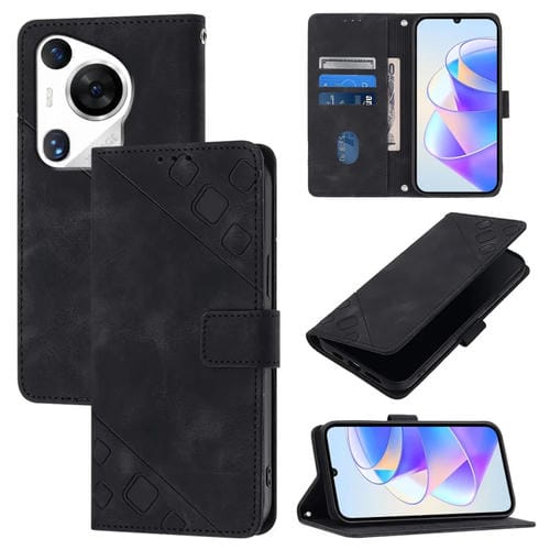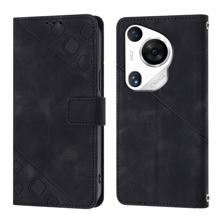 Funda de Piel con Relieve para Teléfono Huawei Pura 70 Pro (Negra)