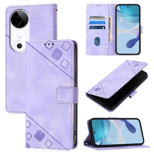 Funda de Piel con Relieve para Teléfono Vivo S19 (Morado Claro)