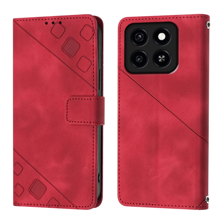 Funda de Piel con Relieve para Teléfono ZTE Blade A35/A55 (Roja)