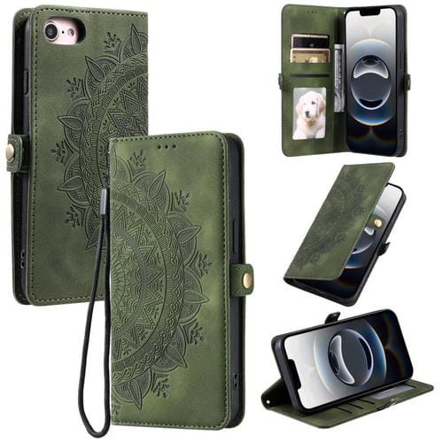 Funda de Piel con Relieve Totem para iPhone 16E (Verde Oscuro)