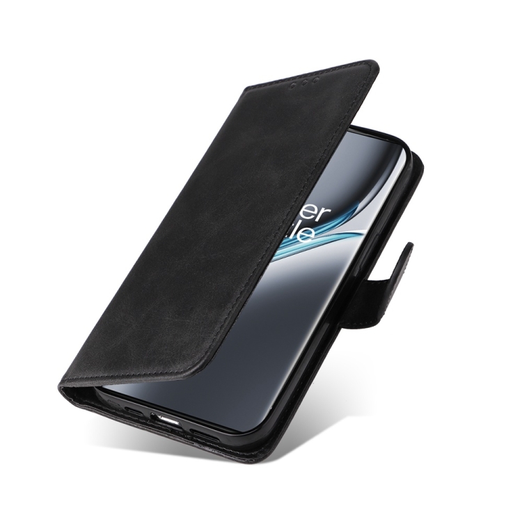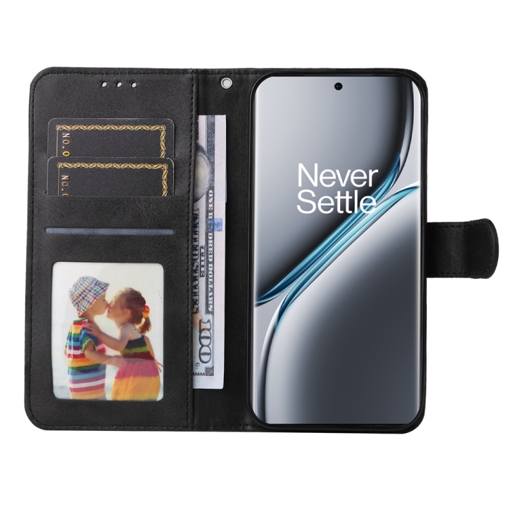 Funda de Piel con Tapa para OnePlus Ace 3 Pro (Negra) Textura Clásica Becerro