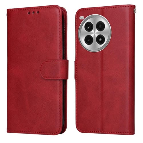 Funda de Piel con Tapa para OnePlus Ace 3 Pro (Roja) Textura Clásica de Piel de Becerro