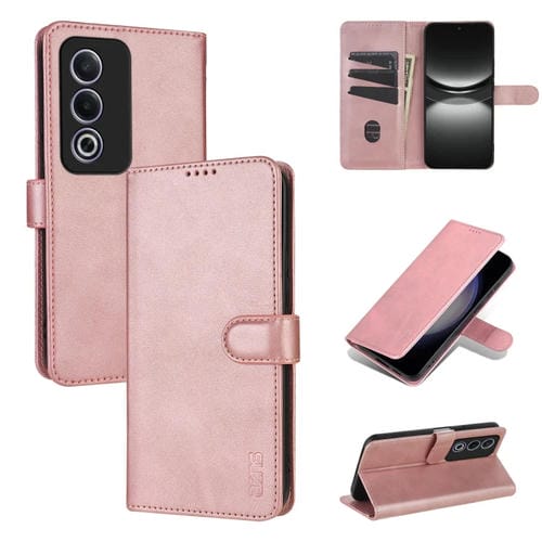 Funda de Piel con Tapa Azns con Textura de Becerro para Oppo A3X 5G / A3 Energy 5G (Oro Rosa)