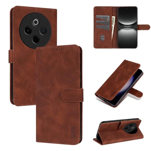 Funda de Piel con Tapa Azns con Textura de Becerro para Vivo Y300 Pro (Marrón)