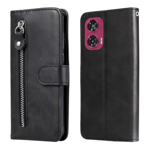 Funda de Piel Textura de Becerro con Cremallera para Motorola Edge 50 Fusion (Negra)