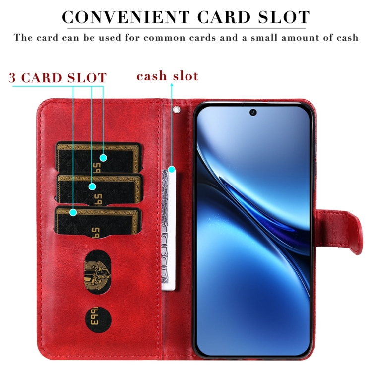 Funda de Piel Textura de Becerro con Cremallera para Honor Magic7 (Rojo)