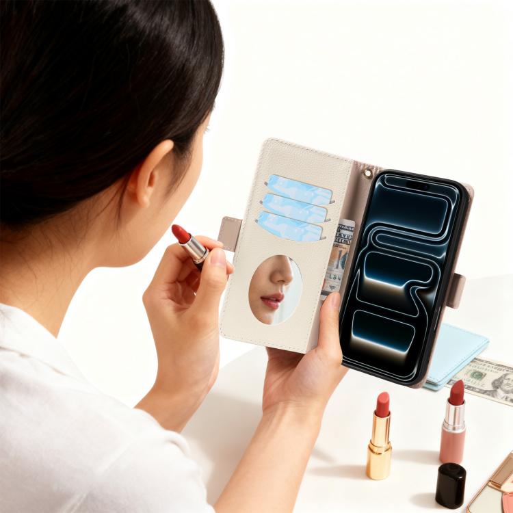 Funda de piel con textura de lichi y espejo para iPhone 17 Pro Max (Azul)