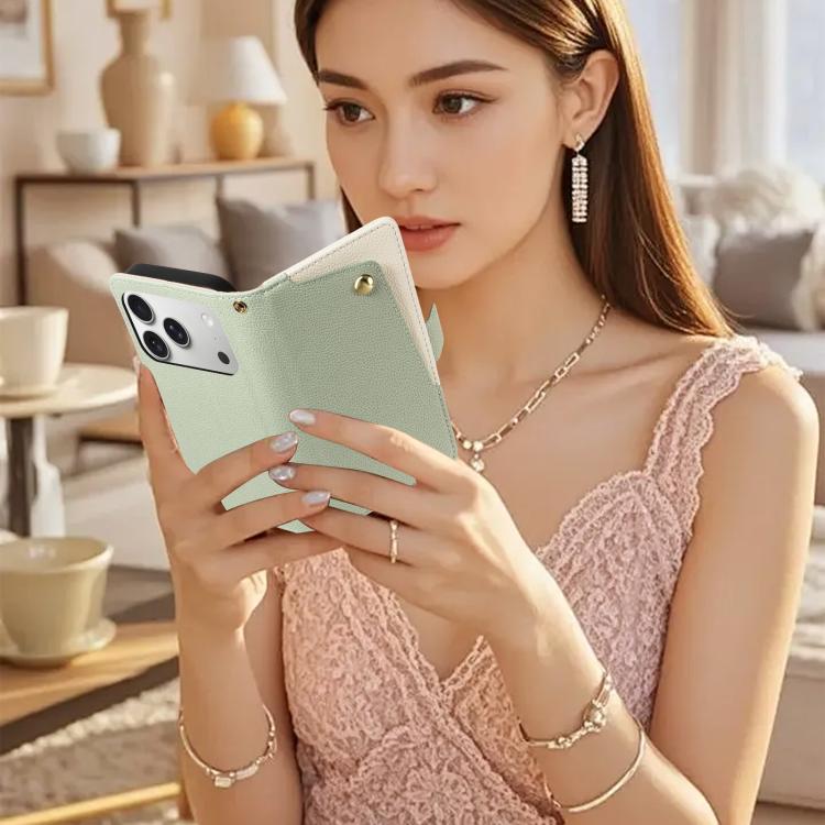 Funda de piel con textura de lichi y espejo para iPhone 17 Pro Max (verde)