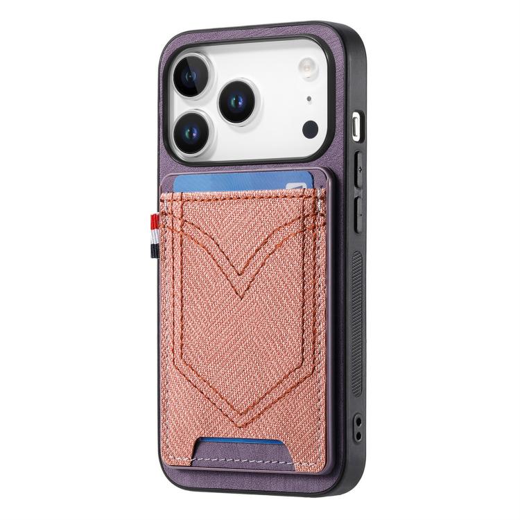 Funda de piel con textura vaquera para iPhone 17 Pro Max con ranura para tarjetas (morado)