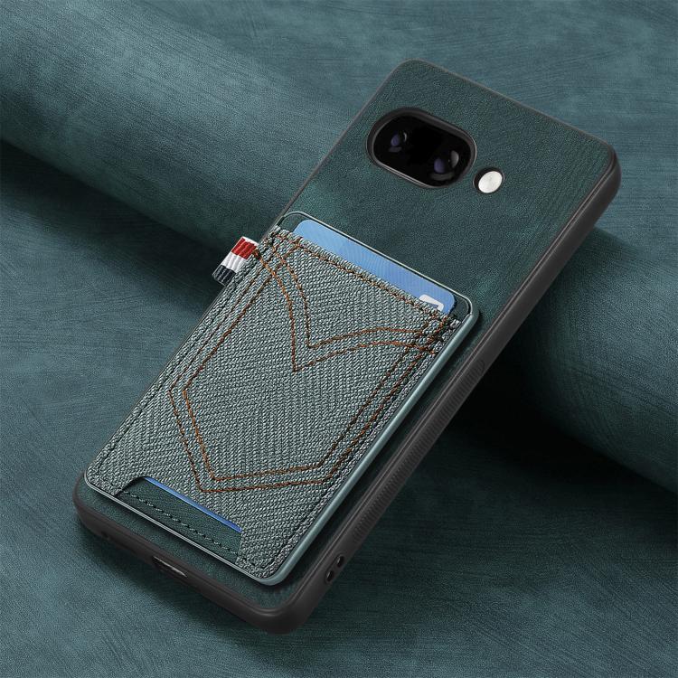 Funda de Piel Textura Vaquera para Google Pixel 9A con Ranura para Tarjetas (Verde)