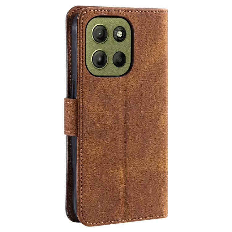 Funda de Piel de Becerro para Motorola Moto G15 con Costuras de Piel de Uña (Marrón)