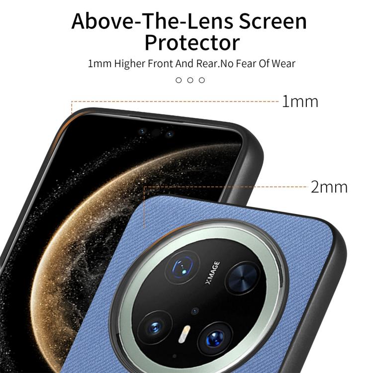 Funda de Piel de Sarga con Parte Trasera de Cuero para Huawei Mate 70 (Azul)