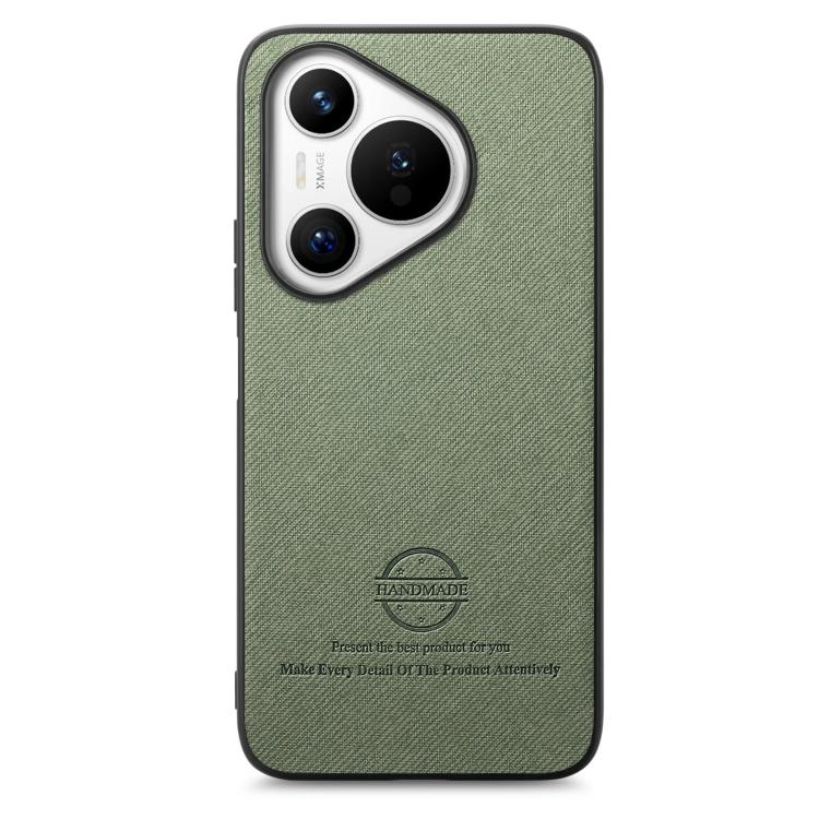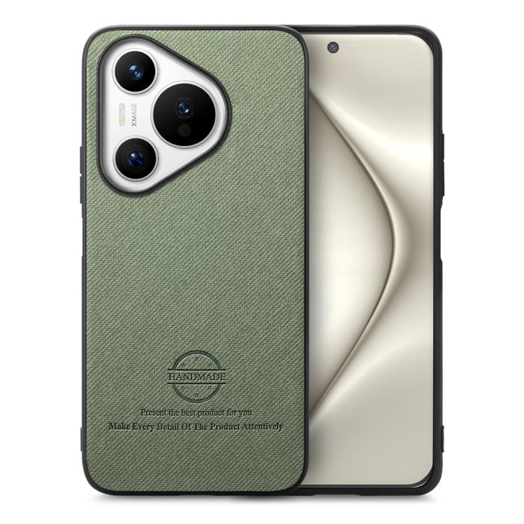 Funda de Piel de Sarga con Parte Trasera de Cuero para Huawei Pura 70 (Verde)
