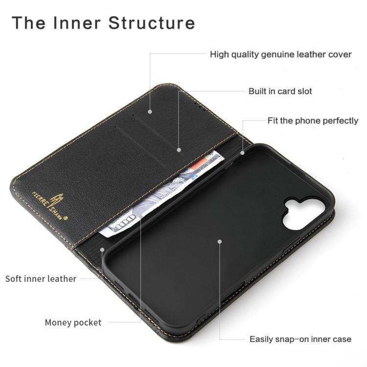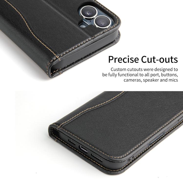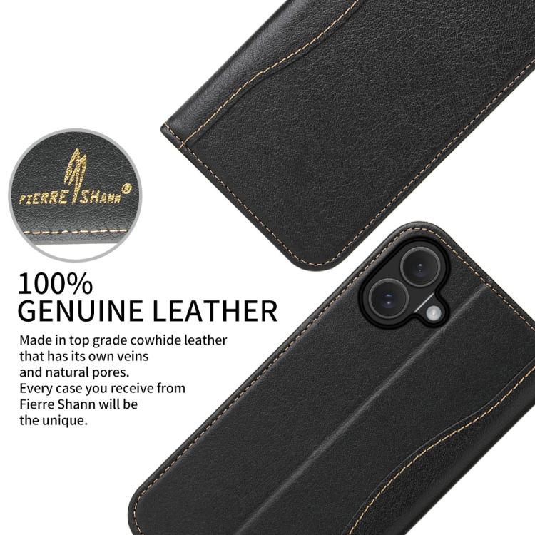 Funda de piel de vaca Fierre Shann con tapa para iPhone 17 (negra)