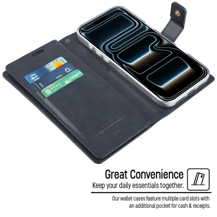Funda de piel GOOSPERY MANSOOR DIARY para iPhone 17 Pro Max con 9 ranuras para tarjetas (Azul oscuro)