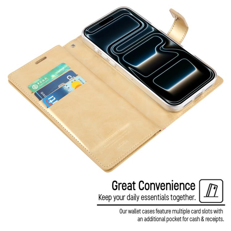 Funda de piel GOOSPERY MANSOOR DIARY para iPhone 17 Pro Max con 9 ranuras para tarjetas (dorada)