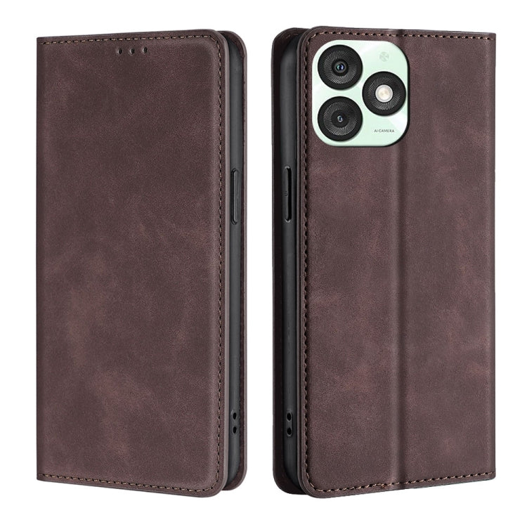Funda de Piel Magnética para Teléfono Itel A50 4G (Marrón Oscuro)