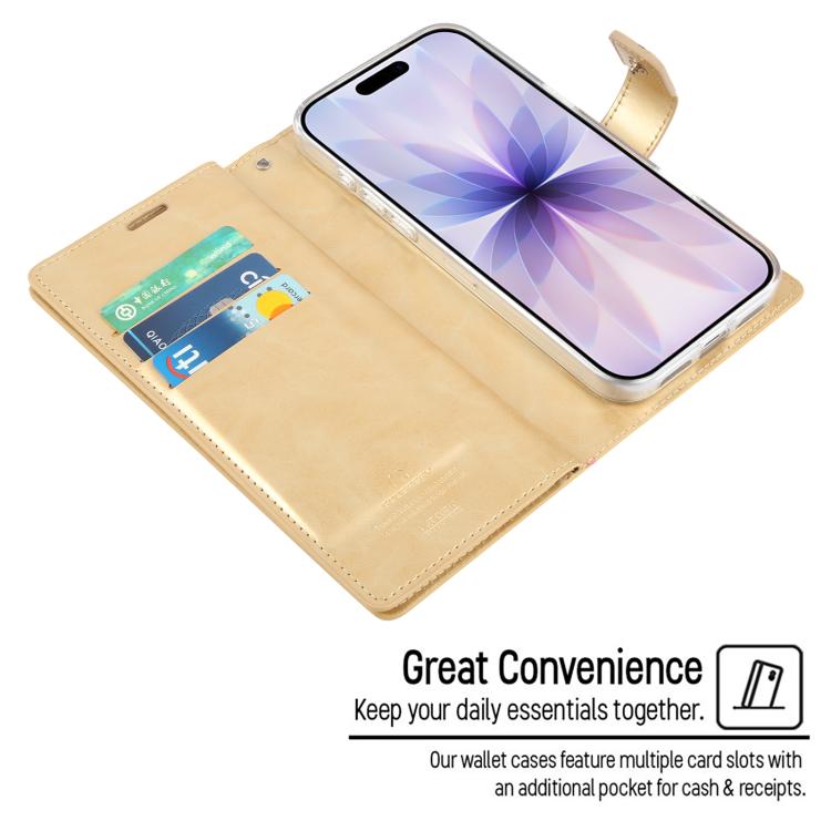 Funda de piel para iPhone 17 GOOSPERY MANSOOR DIARY con 9 ranuras para tarjetas (dorada)
