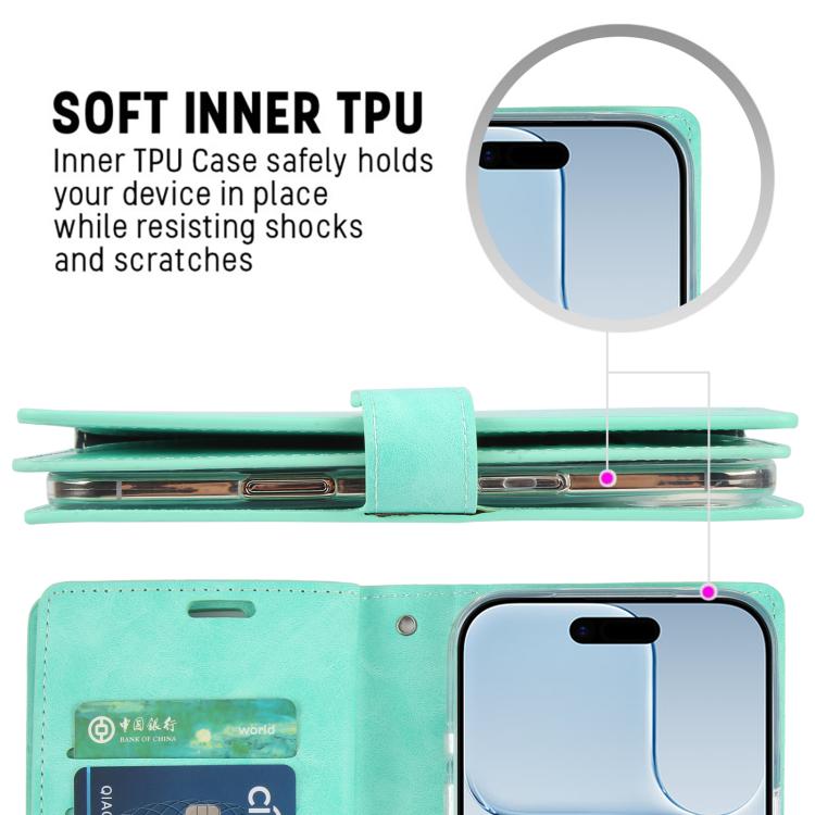 Funda de piel para iPhone Air GOOSPERY MANSOOR DIARY con 9 ranuras para tarjetas (Verde menta)