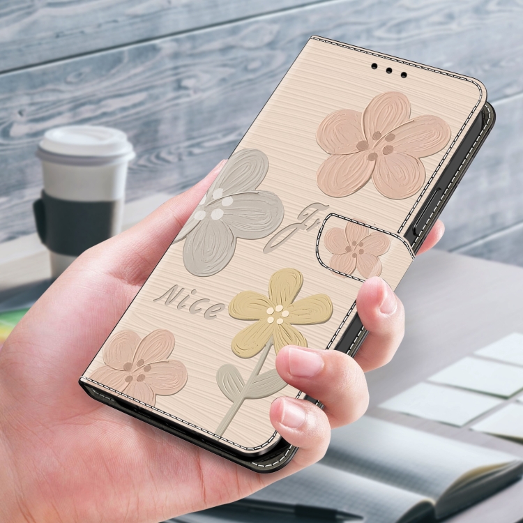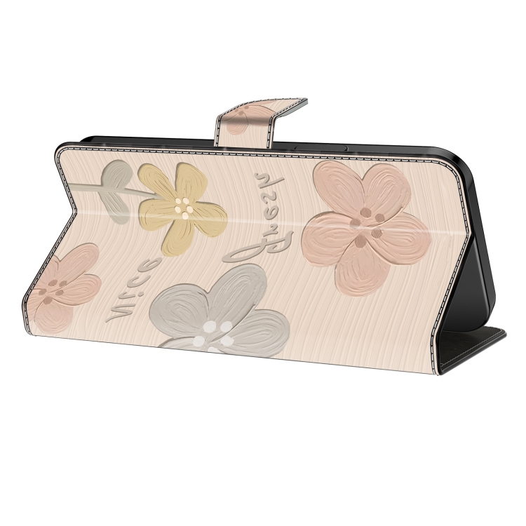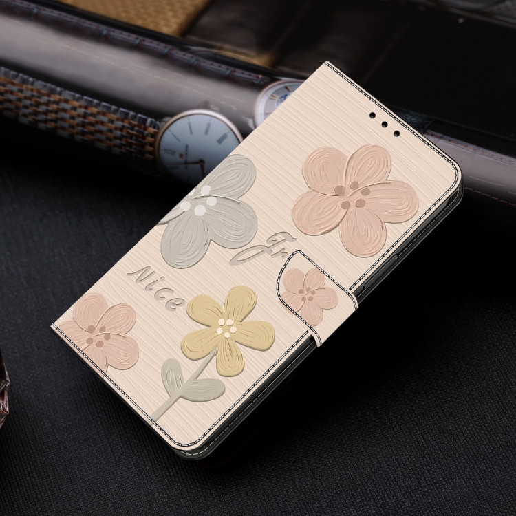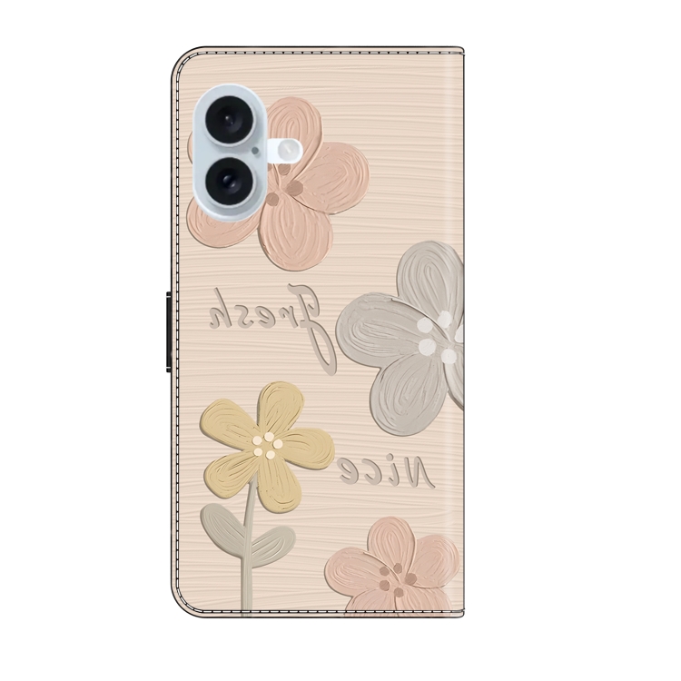 Funda de Piel Pintada a Mano para iPhone 16 (Flores Beige)