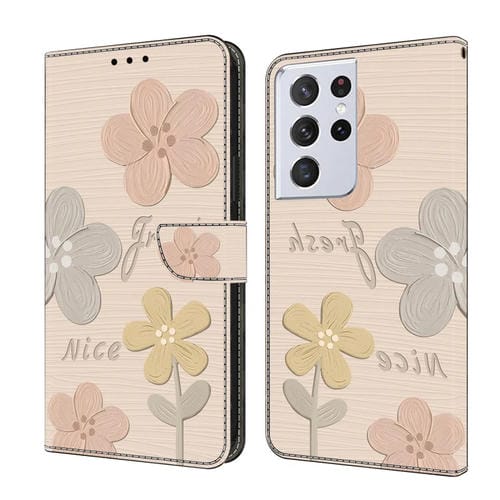 Funda de Piel Samsung Galaxy S21 Ultra 5G Pintada a Mano Flores (Beige)